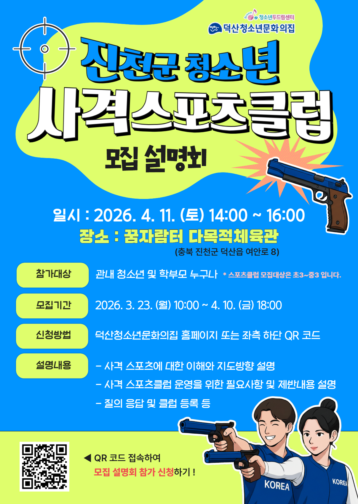 진천군 청소년 사격스포츠클럽 모집 설명회