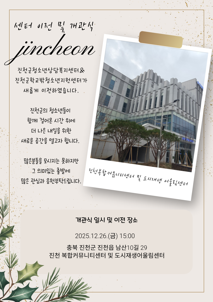 [공지] 2025년 진천군 청소년상담복지센터&학교밖청소년지원센터 이전 안내